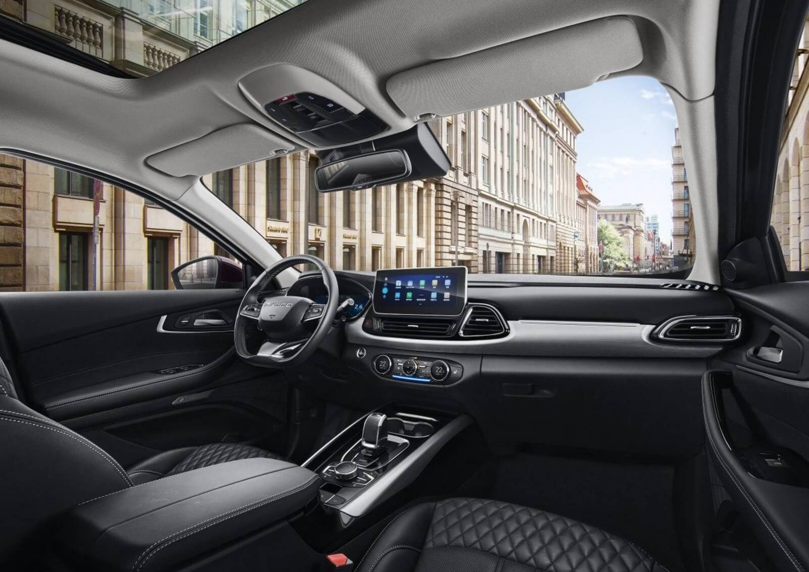 Передняя часть нового CheryExeed TXL удивит открытой решеткой радиатора, растянутой от капота и до самого низа передка, но с небольшой горизонтальной вставкой по центру. Для улучшения дизайна решетку радиатора разбавили горизонтальными хромированными полосами, а так же сетчатой вставкой на заднем фоне. Наличие датчиков и сенсоров в нижней части решетки говорит о присутствии активных систем безопасности и комфорта на борту кроссовера. Действительно, вся электроника от компании Bosch.