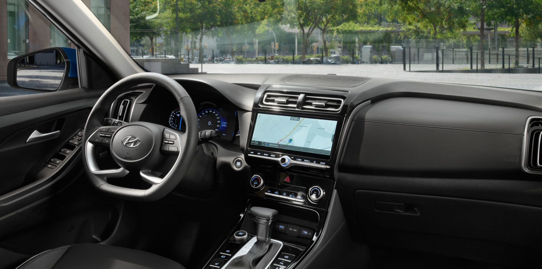 Электронных помощников в топовой Creta полный набор, наряду с адаптивным круиз-контролем в нем есть и ассистент движения в пробке на скорости до 30 км/ч.