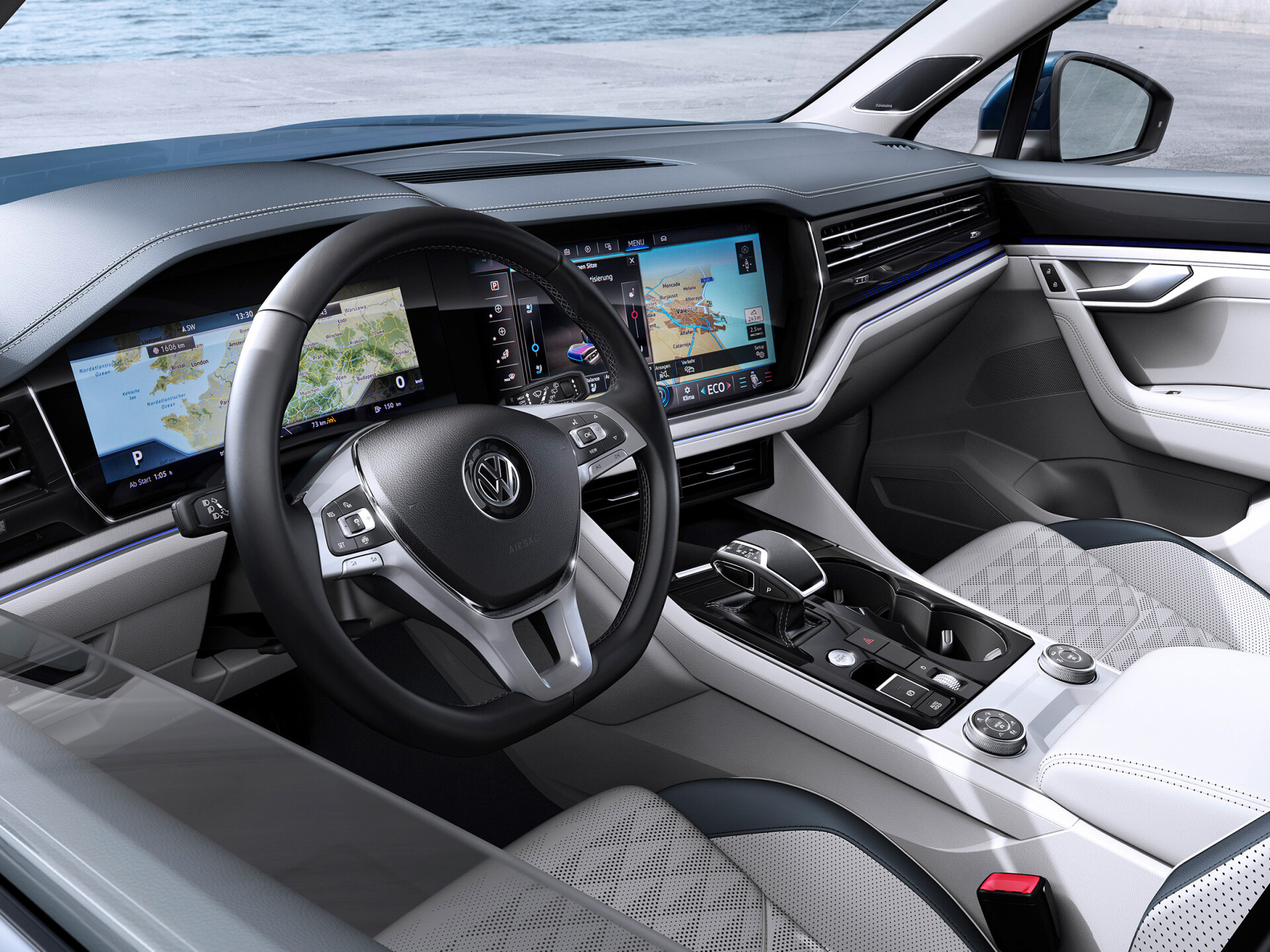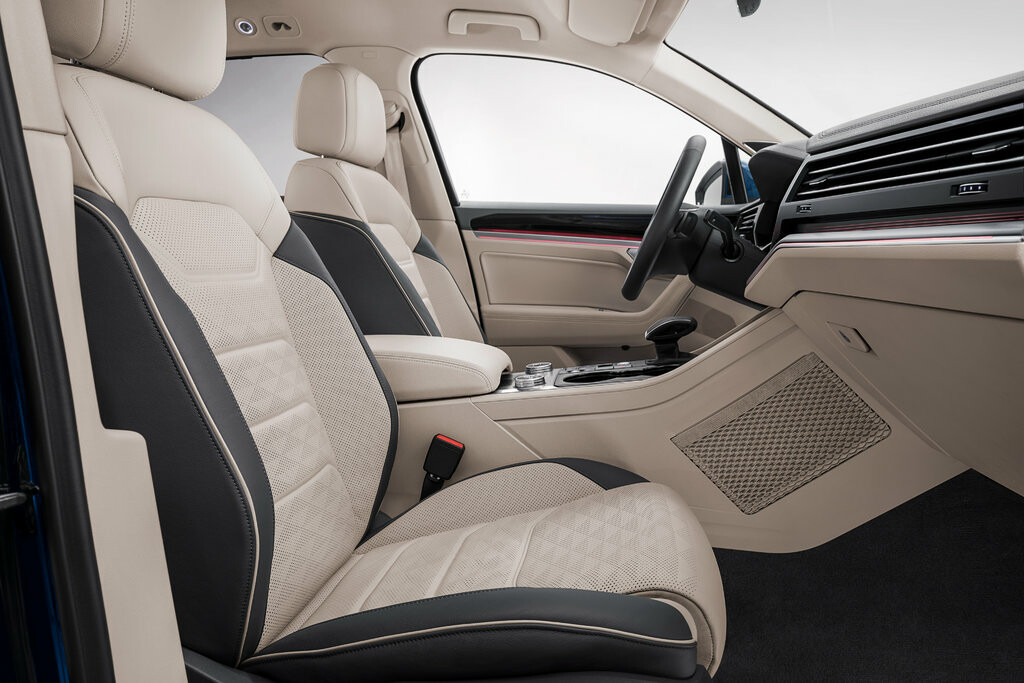 Volkswagen Touareg всегда будет в центре внимания благодаря стилевому направлению R-Line. Такие детали внешней отделки, как бамперы R-Line в цвет кузова, хромированная решётка радиатора, легкосплавные 19-дюймовые колёсные диски Sebring, подчеркнут спортивный облик вашего автомобиля.